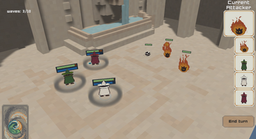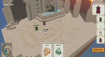 This is a small turn-based battle game where you choose three elemental mages and use elemental cards to cast spells. Enemies have different weaknesses and resistances, so picking the right element at the right moment is the key to winning.
